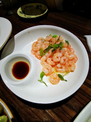 资深肉包子带从没来过这里的小伙伴尝尝,正好饭点去的,着实等了好一阵才有了位置~ 一份海肠饺子半份虾爬子饺子,还是觉得海肠的更好吃~ 本地大头宝正是季节,果断来一盘,鲜嫩无比!赞~ 嘎叭虾凉拌,辣椒不那么辣就好了^_^ 拍黄瓜拌个假鲍鱼,小伙伴说黄瓜下水如果直接用小葱会更好~其实我吃着挺好 本来还想酱螺和小鲍鱼拼一份,小鲍鱼卖光了,只有香螺了-_-#,很喜欢他家的这道菜推荐~ 蘸酱菜用的墨鱼酱(还是海兔酱?!)第一次吃,觉得不错!咸鲜!我对虾酱很是吃不惯,但这个长的差不多做法也差不多,因为上桌时是热的,我居然觉得很好吃,一勺勺的空口就吃了^_^推荐~ 晚饭别去太晚,8点之后就不点菜了~