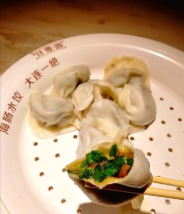 YoYo_6W0N0B7Q大连特色海肠水饺~中国美食节目报道过,所以很多慕名来的客人,每天饭口时间都是排队的!物以稀为贵,这几年大连也陆续开了很多家海肠饺子,可是还是感觉来老店吃一顿才是正宗!