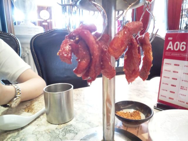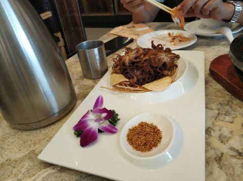 Lv Da Yin Xiang Restaurant概况[1人食] 大连海鲜吃了好几天了,今天独自觅食!这家大连老店听说海鲜不错,菜品也是值得一试,专程前往!享受单身狗套餐! 位置[疑问] 中山路,晨熙广场4楼!大家到了这里会发现还有晨熙大厦什么的,不要上!大家背靠晨熙的任意一个楼,左手一直走,看到必胜客后,绕到楼后面,就能看到提示了,电梯4楼 交通[鸭子] 个人最推荐地铁(1号线,黑礁石站,B口),地铁出来就到!打车,开车备选 价格[红包] 除了海鲜,价格比较实惠 菜品[糖果] 从本次体验的菜品来看,都很不错,手艺,菜的颜值都很好! 「翡翠蚬肉汤」 先说卖相,很好看!单看颜值都值得一试!口感也很好,挺鲜的!滑滑的!八元一位,两位起点(如果有和我一样一个人的朋友,来两份吧,可以喝完的)!也可以来一份,大概32元,我记得,适合家庭用餐! 「石锅鲍鱼」 获奖鲍鱼,没想到!端上来的时候,服务员会在很烫的石锅上道上一些白兰地(我不知道是不是真的,酒味反正不明显),服务员也会提示不要碰到石锅,鲍鱼拿签子串着,我咋感觉有点像关东煮。鲍鱼味道不错,比较弹牙,推荐体验! 「金牌香肴肉」 说实话不爱吃肉的我一开始是拒绝的,看它是经典菜品,算了,试一下吧!肉质不错,全部瘦肉,我吃着觉得还不错,但不知道为啥,觉得有点像猪肉脯。一份肉还挺多的,蛮实惠的! 「茄子炖蚬子」 一道不错的菜,一看就是大连菜(我猜的),咸香口感!不错,有茄子,蚬子,粉条和一些肉[捂脸]!性价比还不错! 「海胆捞饭」 大连各种海胆餐品!海胆捞饭,卖相不错!但是海胆量对一碗米饭来说,显得有点少。这个饭还没有汁子,简单的说就是一碗米饭配上一些海胆,稍微有点干。混着吃,口感还不错,淡淡的甜香味。没吃过推荐试试,别家好像没有! 还有特别想吃的虾爬(皮皮虾)锅贴没有吃上,有些遗憾!准备点鱼籽锅贴,挣扎了一下,放弃了。这就是一个人吃饭的悲哀!(偷拍一张别桌点的鱼籽锅贴,还好没点[捂脸]) [环境][玫瑰] 比较洋气的环境,还挺意外的!装修环境下功夫了,好评! [服务][强] 很好的服务,每个服务员都很耐心,微笑服务!“很高兴为您点餐”,“您请这边”,“您一个人吃不完”,总之好评 总结[鬼脸] 一家值得专程跑一趟的店,大连本地菜品,少量各地经典菜品,海鲜餐品都有!推荐各位吃货前来体验!个人还是推荐坐地铁前往[机智]