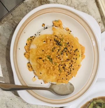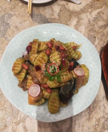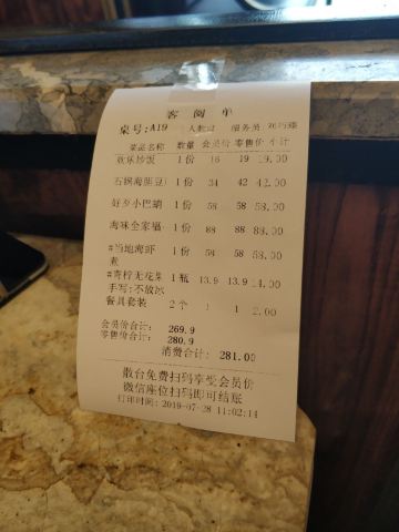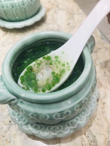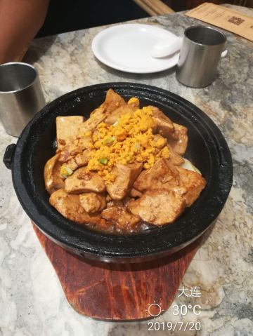 o冰凌雨o概况[1人食] 大连海鲜吃了好几天了,今天独自觅食!这家大连老店听说海鲜不错,菜品也是值得一试,专程前往!享受单身狗套餐! 位置[疑问] 中山路,晨熙广场4楼!大家到了这里会发现还有晨熙大厦什么的,不要上!大家背靠晨熙的任意一个楼,左手一直走,看到必胜客后,绕到楼后面,就能看到提示了,电梯4楼 交通[鸭子] 个人最推荐地铁(1号线,黑礁石站,B口),地铁出来就到!打车,开车备选 价格[红包] 除了海鲜,价格比较实惠 菜品[糖果] 从本次体验的菜品来看,都很不错,手艺,菜的颜值都很好! 「翡翠蚬肉汤」 先说卖相,很好看!单看颜值都值得一试!口感也很好,挺鲜的!滑滑的!八元一位,两位起点(如果有和我一样一个人的朋友,来两份吧,可以喝完的)!也可以来一份,大概32元,我记得,适合家庭用餐! 「石锅鲍鱼」 获奖鲍鱼,没想到!端上来的时候,服务员会在很烫的石锅上道上一些白兰地(我不知道是不是真的,酒味反正不明显),服务员也会提示不要碰到石锅,鲍鱼拿签子串着,我咋感觉有点像关东煮。鲍鱼味道不错,比较弹牙,推荐体验! 「金牌香肴肉」 说实话不爱吃肉的我一开始是拒绝的,看它是经典菜品,算了,试一下吧!肉质不错,全部瘦肉,我吃着觉得还不错,但不知道为啥,觉得有点像猪肉脯。一份肉还挺多的,蛮实惠的! 「茄子炖蚬子」 一道不错的菜,一看就是大连菜(我猜的),咸香口感!不错,有茄子,蚬子,粉条和一些肉[捂脸]!性价比还不错! 「海胆捞饭」 大连各种海胆餐品!海胆捞饭,卖相不错!但是海胆量对一碗米饭来说,显得有点少。这个饭还没有汁子,简单的说就是一碗米饭配上一些海胆,稍微有点干。混着吃,口感还不错,淡淡的甜香味。没吃过推荐试试,别家好像没有! 还有特别想吃的虾爬(皮皮虾)锅贴没有吃上,有些遗憾!准备点鱼籽锅贴,挣扎了一下,放弃了。这就是一个人吃饭的悲哀!(偷拍一张别桌点的鱼籽锅贴,还好没点[捂脸]) [环境][玫瑰] 比较洋气的环境,还挺意外的!装修环境下功夫了,好评! [服务][强] 很好的服务,每个服务员都很耐心,微笑服务!“很高兴为您点餐”,“您请这边”,“您一个人吃不完”,总之好评 总结[鬼脸] 一家值得专程跑一趟的店,大连本地菜品,少量各地经典菜品,海鲜餐品都有!推荐各位吃货前来体验!个人还是推荐坐地铁前往[机智]