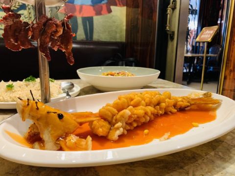 海胆刺身,锅包肉,海肠捞饭,三鲜焖子,石锅海胆豆腐,鲜虾芹菜丸,石锅鲍鱼,松鼠鲈鱼,鱼香虾球,老醋六样,酱油炒饭,铁板牛柳,酸汤肥牛,大马哈鱼锅贴,黄瓜蚬子饺子,小白菜鱼丸汤,田七木耳扇贝,金钱茄子,干锅肥肠,五彩雪花扇贝,海鲜饺子,招牌虾爬锅贴,烤海虾,金牌香肴肉