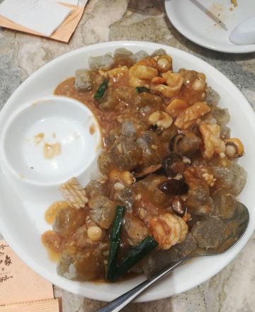一家主要吃海鲜的店,生意不错,很多顾客都是慕名而来。这家的海鲜价格不算贵,味道不错,菜量也算比较大的。香肴肉、鲜虾芹菜丸、石锅鲍鱼的点单率比较高。