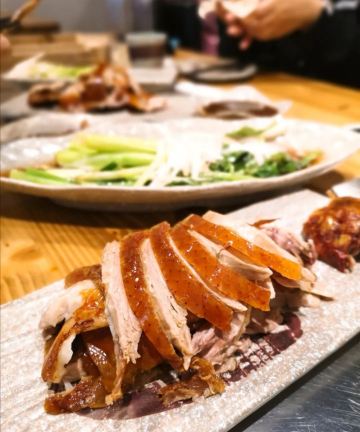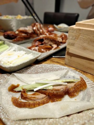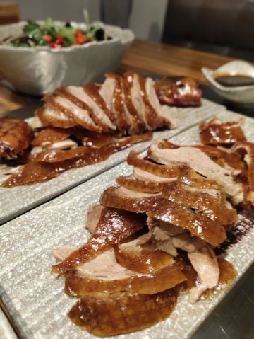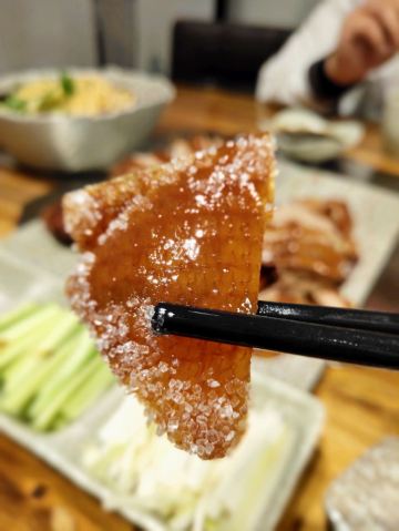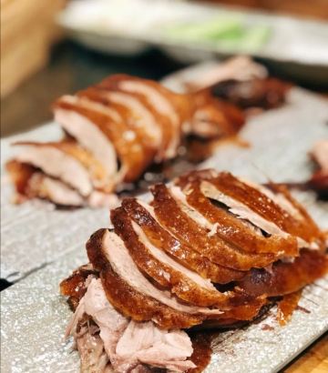 『新兴传承烤鸭』酥&腻 ⭐这个价位吃到如此的烤鸭真是不错滴! ⭐早就耳闻这家店,我总觉得烤鸭是个需要仪式感的吃食,打包回家味道可是大变样,我宁可不吃,胖驴前几天告诉我这里可以堂食了,我这才过来[呲牙] ⭐ 重度鸭皮爱好者的我,别家鸭子每次都是没吃够呢鸭皮就没有了,这里的鸭皮吃了还有吃了还有,我吃到撑居然也没吃光鸭皮[晕] ⭐ 鸭皮吃多了的后果就是腻到原地爆炸 ⭐ 性价比很高的烤鸭店!百元内吃到整只鸭,还有片鸭服务,味道也可以,超值了! ⭐但是真是太腻了,点份捞汁素什锦清一下口吧[发呆] ⭐点了个水爆肚,然后上来图7的一盘,这是水爆肚片?[捂脸],没有百叶就说做不了,别糊弄顾客啊[微笑] ⭐上菜超级慢的,不建议点炒菜,就吃鸭吧[微笑]