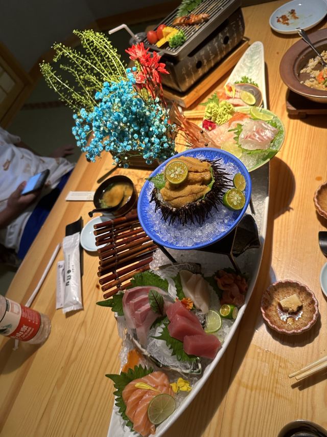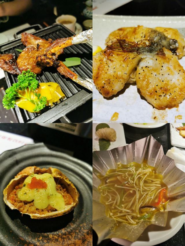 三文鱼肚,牛小排碳烧,鹅肝蒸蛋,芥末章鱼,酱烧牛舌,海胆,牛舌,三文鱼刺身,羊排,综合生鱼片(梅),松茸汤,生鱼片套餐,炸鸡块,鳗鱼饭,寿喜锅,红烧碟鱼头,浦烧烤鳗,综合生鱼片,法式鹅肝,综合和风沙拉,蓝鳍金枪鱼腹刺身,烤肥肠,香煎鵝盰,焦糖三文魚壽司