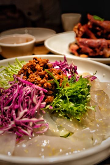 哈尔滨酱熏手撕骨,于掌勺烤大花卷,老式锅包肉,酸萝卜炒粉,东北粗粮大拉皮,于掌勺大拌菜,三鲜疙瘩汤,四平锅包茄子,红糖开花馒头,压锅番茄土豆炖牛肉,锅包肉
