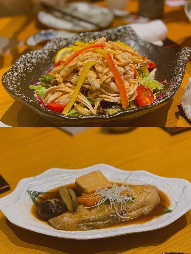 位于森茂大厦后身的日本一条街,日料店很多,小店装修精致日式,服务态度特别好,有礼貌。 菜品总体也是可圈可点的,个人比较推荐刺身,厚实新鲜!「棒棒鸡沙拉」和「海鲜沙拉」料都很足,汁调的也好吃。「蒜味烤牛舌」、「五花肉鸡蛋卷」、「煮鲽鱼」、「烤鳗鱼」都很不错。最后好尝试了一下日料店的披萨,「西红柿披萨」和「日式照烧披萨」,芝士满满超级香,爱了! ᕕ( ᐛ )ᕗ点评完毕
