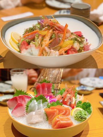和风牛肉锅,牛油果沙拉,五花肉明太鱼籽芝士卷,金枪鱼,可尔必思,鳗鱼定食,炸鱿鱼丝,天妇罗定食,蒜味烤牛舌,寿喜锅,三文鱼刺身,炸虾天妇罗,烤牛舌,甜虾,海鲜沙拉,烧鸟,培根铁板山药,烤鸡肉丸,烤鸡肉串,加吉鱼片,铁板煎和牛,桃子烧酒,西红柿芝士沙拉,生鱼片大船,日式披萨,烤六线鱼,煮鲽鱼,牛舌