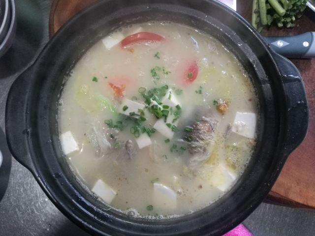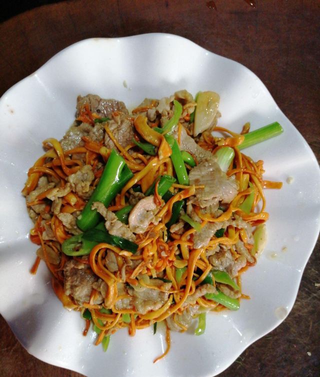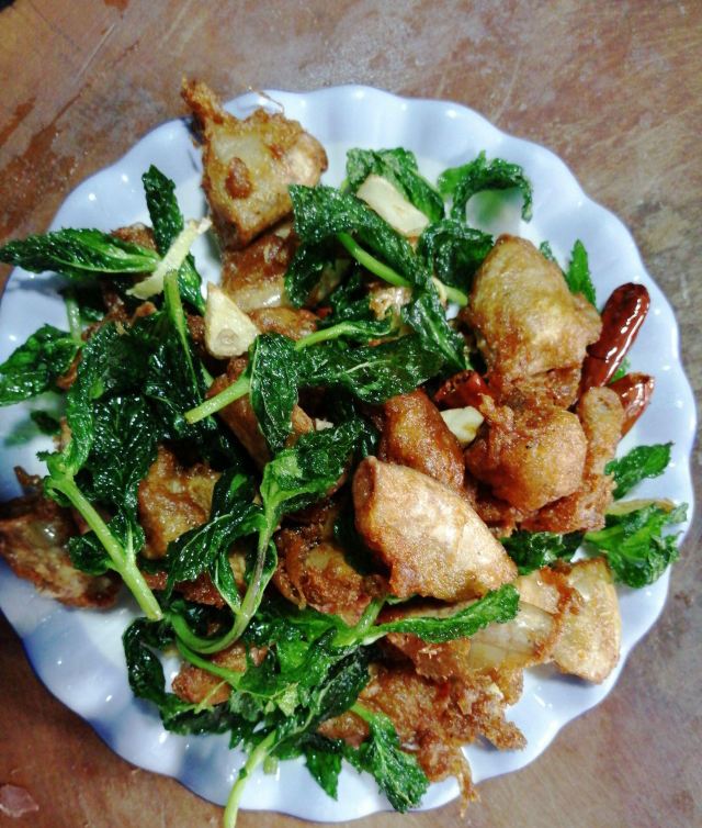 黄焖鸡,银鱼煎蛋饼,石榴花炒肉,炒水性杨花,拌猪蹄,木瓜酸辣鱼,石榴花炒土豆泥,茉莉花煎蛋,青椒鱼,海菜汤,银鱼煎蛋,水性杨花,猪肠炒土豆,生炒里脊肉,酸辣鱼,韭菜炒河虾