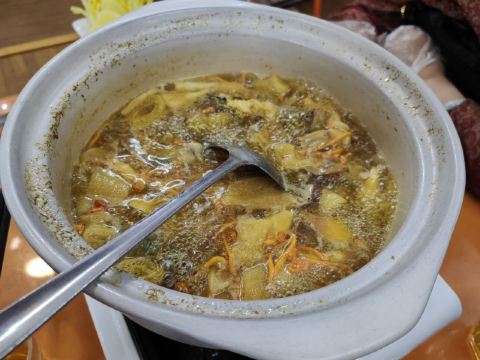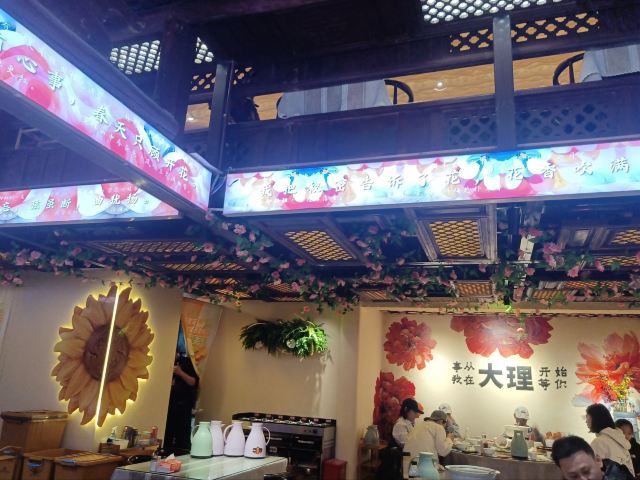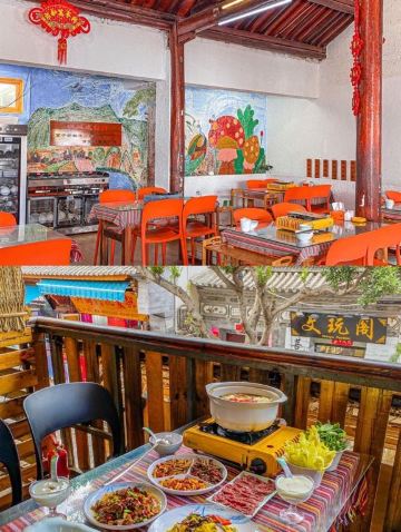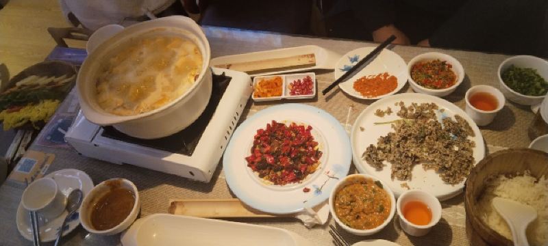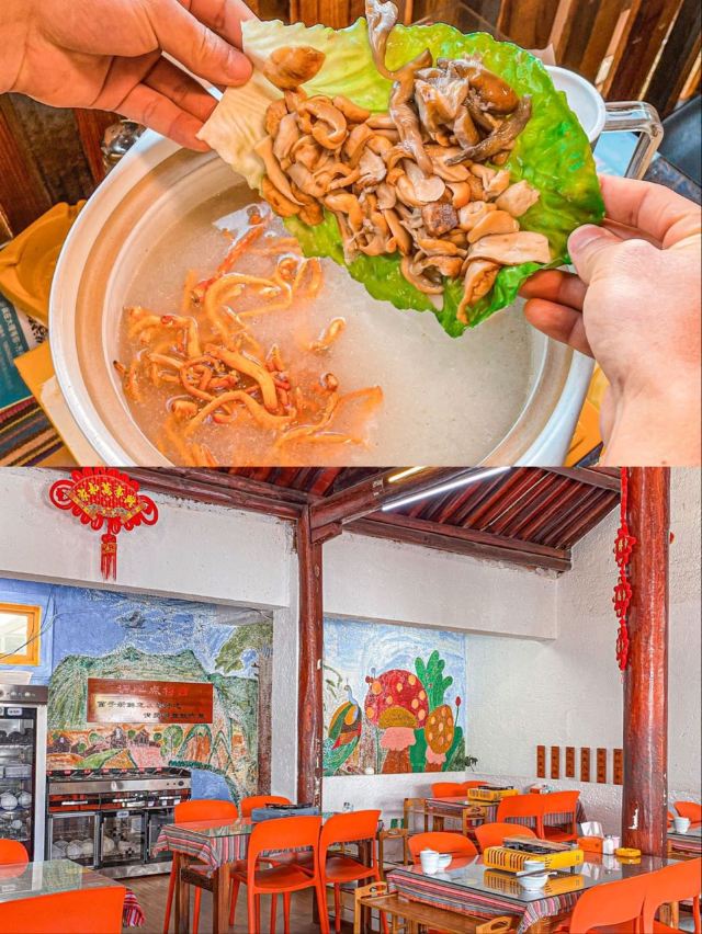 这家餐厅的店名很文艺,位置也十分好找,就在洱海门附近。这里可是吃菌子的好地方,干椒牛肝菌微辣,菌子的鲜美并没有被掩盖,吃起来非常鲜嫩;跑山鸡汤锅,汤锅上了之后,服务员会把菌菇放进去,开锅后再等10分钟可以喝汤,20分钟可以吃菌,味道十分鲜美。