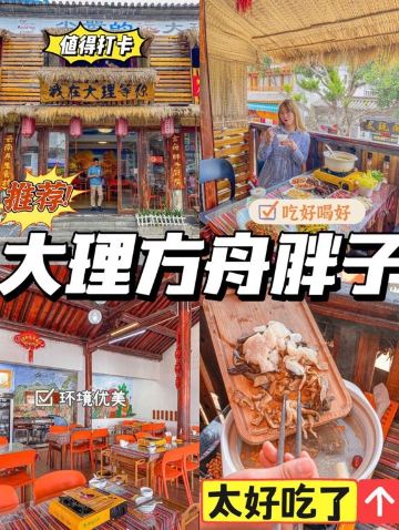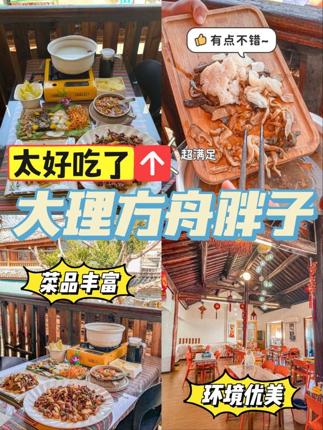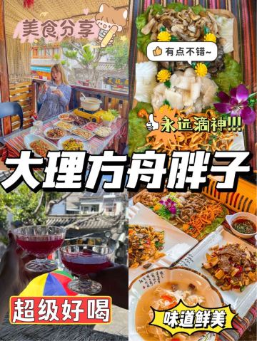 余维佳来云南大理🔥反复打卡苍山脚下这家白族美食餐厅!如果你问我大理哪家网红餐厅好吃,那这我可有发言权了!来大理,就来这家方舟胖子餐厅!🌸店名:大理方舟胖子•我在大理等你店🛣地址:人民路下段498号(东玉街与人民路交叉口西南角)🔥第一次来大理,从火车站穿过大理老城区到古城的路上心底都是欢喜,天边的火烧云,路上偶尔看到的海,还有盘旋在海面上的海鸥!大理,我终于来啦~🔥野生菌汤锅野生菌汤锅的鲜美程度可以说连海鲜都比不上,汤汁真真炒鸡无敌鲜甜,用牛肚菌、竹荪、鸡枞菌、黄罗伞煲出来的鸡汤再挑食的人都得狂喝两大碗!!🔥炒见手青来大理吃得真的都是以前不曾品尝过的食材和美食,带着丝丝油香的见手青非常特别,香脆顺滑的口感很哇塞!🔥松露炒鸡蛋虽然是他们家最贵的一道菜,但是性价比可是非常高呢!这道菜的料真的非常足,可简直就是国宴的标准呀!🔥鲜牛肉肉质特别鲜美,口感饱满,吃进嘴里真的满满的幸福感和满足感!