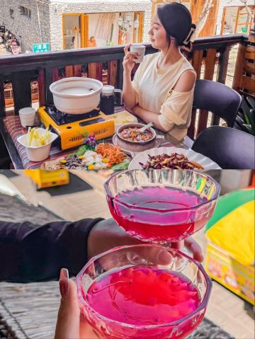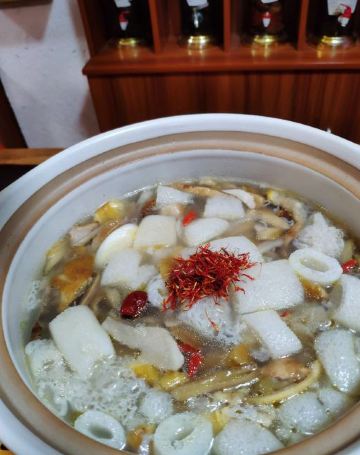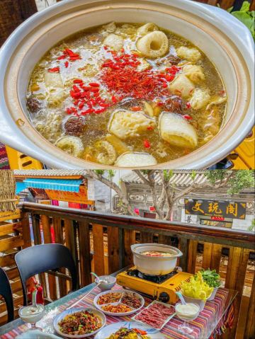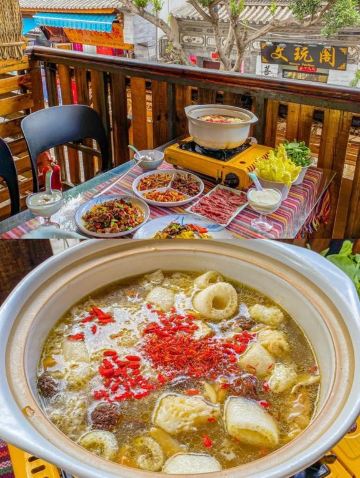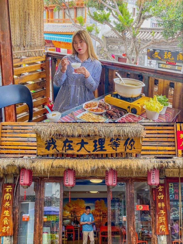 SuMMeR ^-^✅大理打卡 来大理一定不要错过这碗颜值与美味共存的菌汤! 🌸店名:大理方舟胖子•我在大理等你店 🛣地址:人民路下段498号(东玉街与人民路交叉口西南角) 🎈环境特别好 两层楼,装修古色古香,有临街的座位,可以古城内街道上人来人往。 🎈“野生菌”,是大自然雨季过后,留下来的最佳礼物。 🔥点的菌锅套餐,有跑山鸡汤锅搭配黄罗伞菌、竹荪菌、牛肝菌、鸡肉。肉质饱满,汤汁鲜嫩,超级好喝! 🔥服务员把汤锅上来后,会先帮你下菌菇,下完各种菌菇后,服务员会在桌子上放个沙漏,十分钟左右,就可以吃了。 🔥吃菌汤锅的顺序是:先喝汤,再吃菌,最后涮菜。 汤锅开了后,先盛一碗汤,入口能感受菌香味和淡淡的甜,喝两口后,再放一点点盐,这汤的鲜味立马就上来了。 🔥汤锅内蔬菜有云南高原生态土豆,花甸坝养生娃娃菜,菜都超级新鲜,一定要吃!