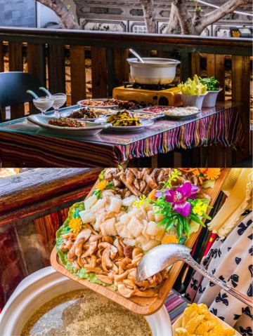 傣味手抓饭,三宝烧鸡,水性杨花,金汤风花雪月鱼,菌香豆腐,菌香牛肉,松露炒鸡蛋,虎掌菌爆鱿鱼丝,火腿爆鸡枞,鲍鱼见手青,核桃牛肝菌,百合爆松茸,鲜美全菌汤,鲍鱼野生菌,红烧肉烧鸡枞菌,野生菌炒米线