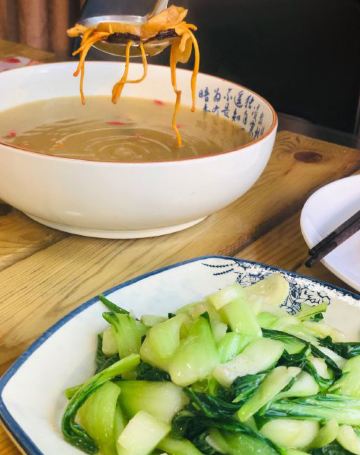 环境超级可以,坐在二楼可以边欣赏美景边吃着美食。闺女说他家的菌汤超级好喝。