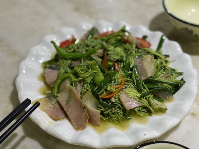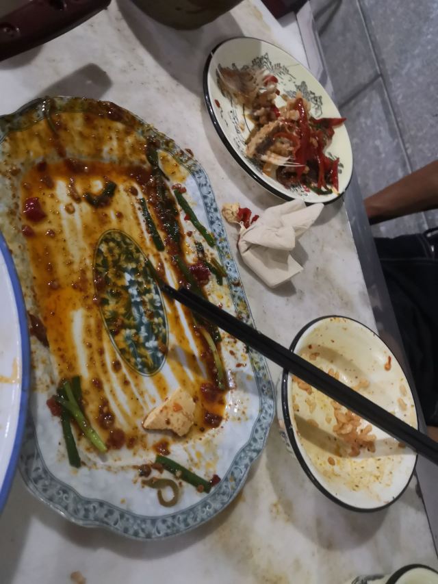 一个酸汤弓鱼,一个麻辣螺蛳肉,一个炝炒野菜,一个蕃茄鸡蛋汤,我们四人吃得干干净净,味道真的不摆老,就是好像客人多了忙不过来,哈哈哈哈😄😁😁