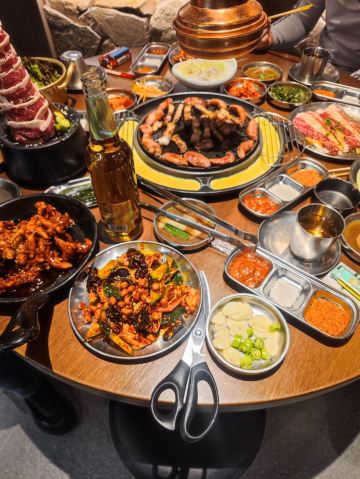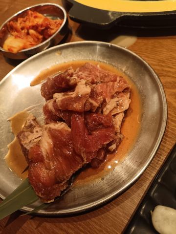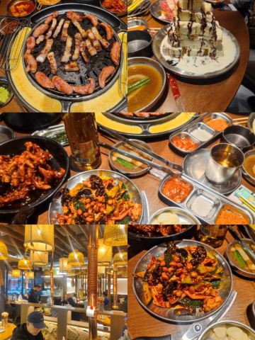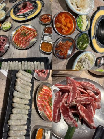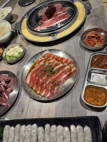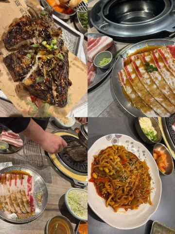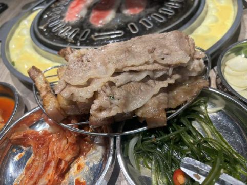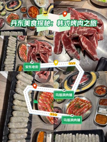 YoYo_2L6T1U2A安东老街的韩式烤肉宝藏!马场洞的新鲜与正宗并存 来丹东安东老街,一定要去马场洞肉铺吃顿韩式烤肉!店内氛围特别有烟火气,烤架上的肉滋滋作响,食客们边吃边聊天,偶尔传来阵阵笑声,搭配着韩式装修,让人感觉特别亲切自在。 食材新鲜是这家店的招牌,所有肉类都明档展示,牛舌切得薄而均匀,烤到微卷时口感脆嫩,蘸上海盐和黑胡椒,鲜得让人停不下筷;猪五花烤到金黄焦脆,油脂被充分烤出,一点不腻,裹上山蒜叶吃超地道。 作为正宗韩式烤肉店,口味完全不输韩国本地店铺,从酱料到小菜都严格按照韩式配方制作,辣白菜是传统发酵工艺,酸甜辣平衡得刚好,海带汤清淡鲜美,喝完浑身暖和。在这里,既能吃到新鲜高品质的烤肉,又能感受正宗的韩式风味,难怪回头客这么多!
