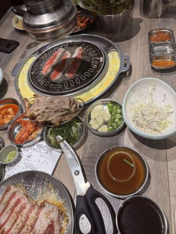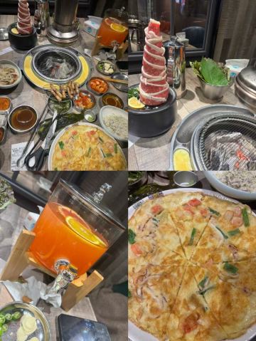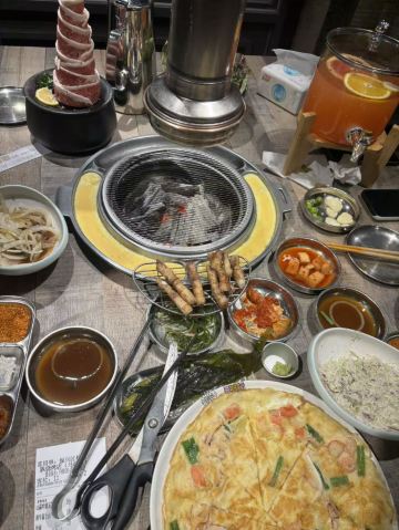YoYo_2O6I0W7O韩式氛围里的烤肉狂欢 丹东高丽街的马场洞肉铺,藏着最浓的韩式烟火气!刚到店就被热闹氛围吸引,邻桌食客边烤肉边说笑,墙上的韩式漫画超可爱,连餐具都是韩式风格,瞬间代入感拉满。服务员态度超赞,刚坐下就端来热乎的南瓜粥,还耐心教我们用韩式剪刀分肉,细节处满是用心。 他家烤肉做法超有特色,招牌牛五花会搭配韩式年糕一起烤,肉香混着年糕的甜糯,一口沦陷;还有特色烤蘑菇,用韩式酱汁拌过再烤,鲜得能吃出家的味道。服务员全程主动帮烤,不用自己动手就能吃到火候刚好的肉,还会及时添小菜、换篦子,完全不用操心。这正宗味道、热闹氛围加贴心服务,绝对是丹东韩式烤肉的必吃榜!