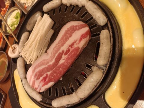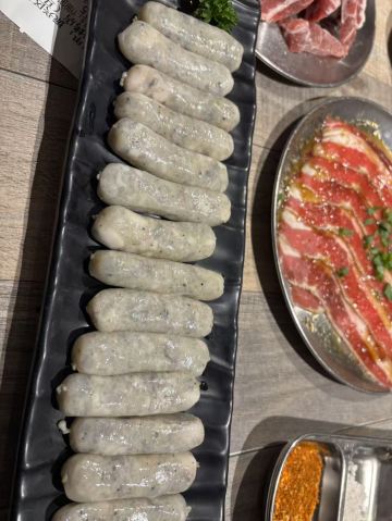 厚切猪五花,秘制牛五花,金枪鱼紫菜手抓饭,调味牛肋条,芝士地瓜,山蒜叶烤五花肉,马场洞鸡翅,荞麦冷面,芝士玉米,石锅拌饭,烤肉