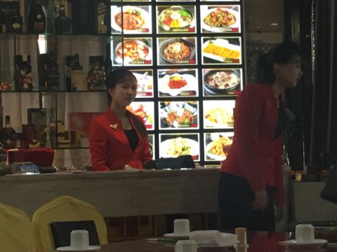 no photo朝鲜国营全资饭店 冒死偷拍系列 工作人员应该都是朝鲜背景家庭子女 待人接物训练有素 还看到了久违的绿皮新华字典 上菜时看似亲切但逃不了查户口模式哪里来来干嘛 随时处于被监控状态。。。 最后朝鲜铁板牛仔骨虽然有点焦但味道还不错