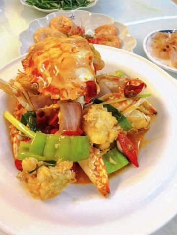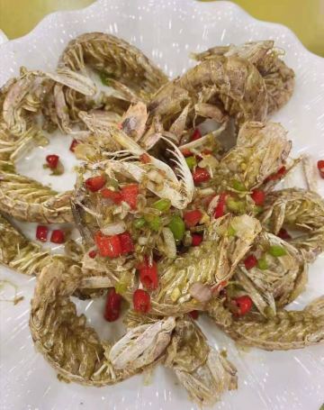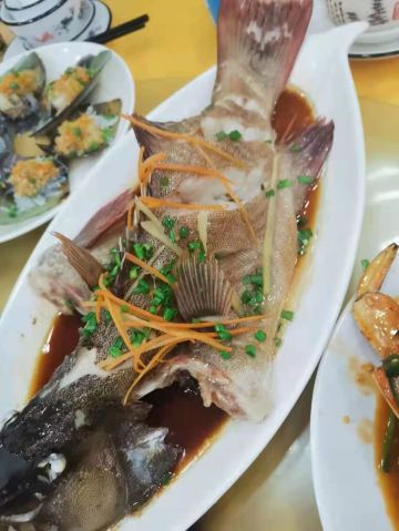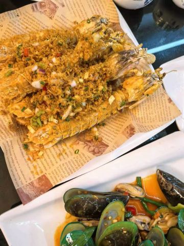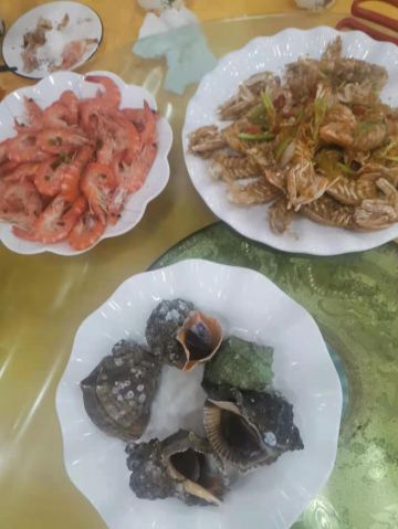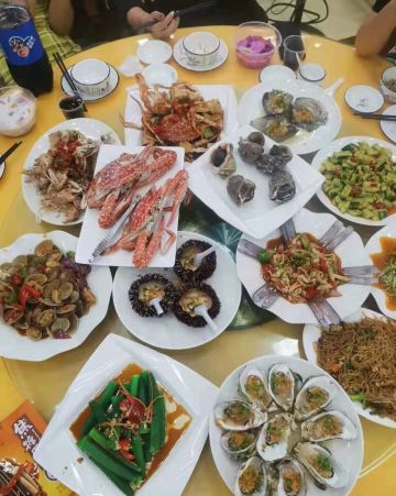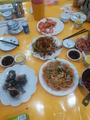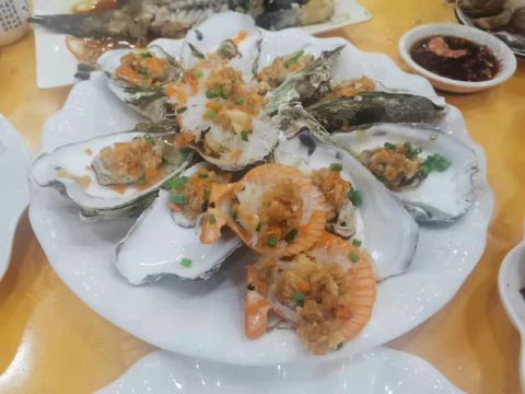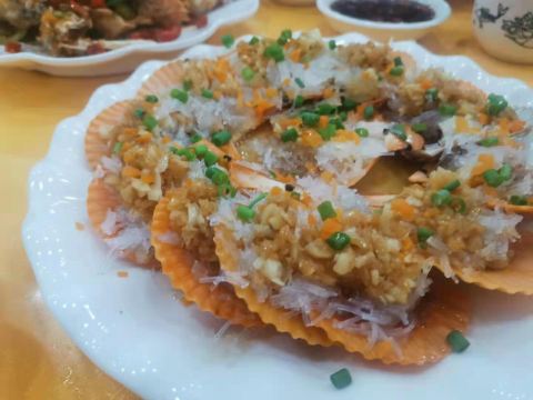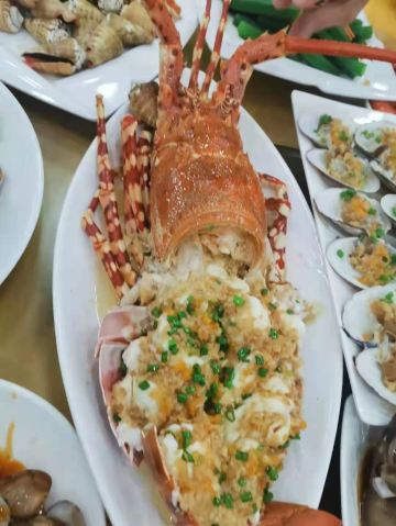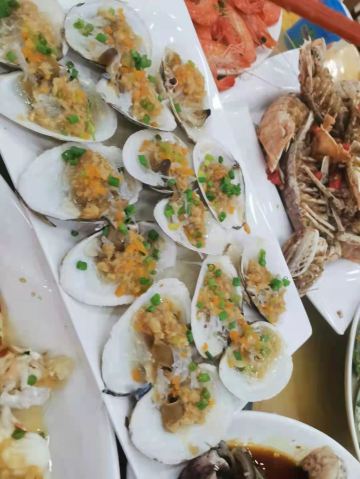 清蒸石斑鱼(鲜活),招牌香辣蟹,蒜蓉粉丝蒸扇贝(鲜活),蛤蜊炖蛋(鲜活),白灼基围虾(鲜活),鲍鱼