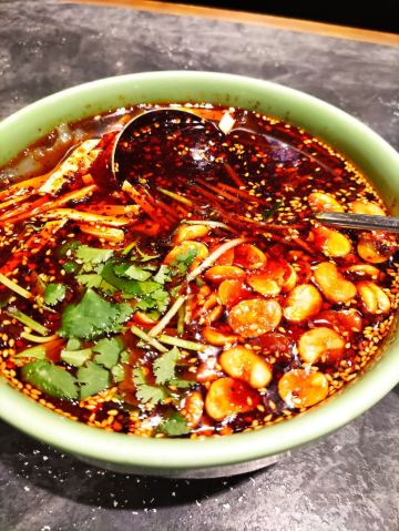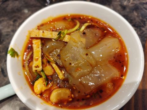 bluecrane【位置】鼓楼旁边。这里一圈好多吃的呀。 【服务】进门右手大堂的大姐挺好的,有问必答。但是,当她不在的时候,我叫了另一个服务员帮我拿打包袋,然后就看着她,答应了我,走过收银台,走到最头上走廊那儿,和别的服务员聊了几句,然后什么也没拿,又走回来,路过我,完全忘了我的需求,冲着,要扣一颗星。 【菜品】 -小米凉糕:特别喜欢上面的玫瑰果酱,配上凉糕,一人食,也变得有温度了。 -英雄兔头:15元/只,涨价啦。一个个卖,真好。挺喜欢的,没有成都的辣,刚刚好入味。 -抿豆面(小份):菜单上没有小份,我在微信号里点,有小份。结果端上来一海碗,惊呆了——这真的是小份啊?!有豆腥味,或者说豆子的清新。拌点酱,很好吃。