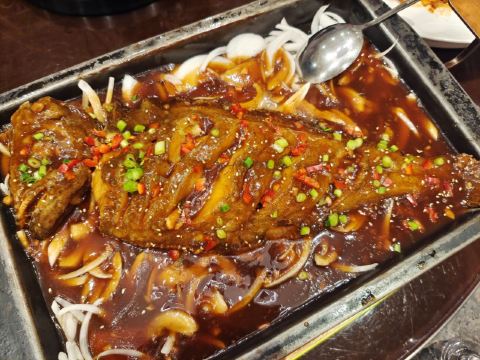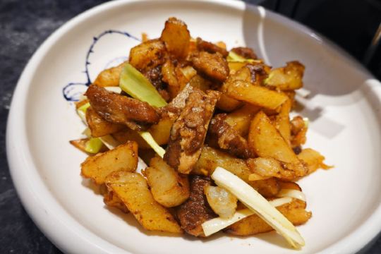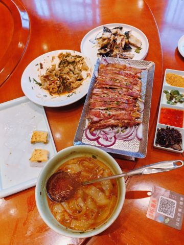 用脚下的路丈量这个世界【服务】早上九点多来取号,是可以在开餐后第一波吃上的。然而十点半没有赶到,十点四十五到时,号已经过了。好在服务灵活,安排了拼桌。大包间内一个大桌被安排了四组2-3人,家里老太太还觉得这种安排挺有意思,包间大姐服务也很好,上菜续水都不耽误。给灵活的服务点赞。 【口味】 如果跟对面只能选一家。推荐这家,每道菜都好吃不踩雷 💯💯黄米凉糕,好吃,连不爱吃甜食的老爸都吃了其中的一半 💯💯招牌茄子,焦糖的地方有点粘牙,整体是不错的 💯💯💯浑源凉粉(大例)^,老妈包了,清爽解腻,完全不辣 💯💯沙葱油泼莜面,我的最爱,好吃 💯💯都府砧板羊排,虽然等的时间有点久,但是值得的,烤的刚刚好。