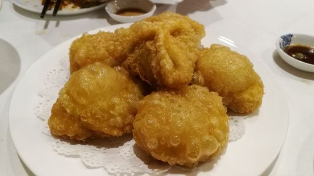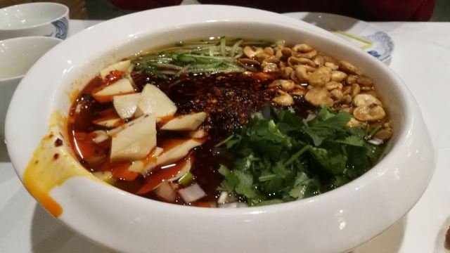 bluecrane【位置】在仿古街深处,打车只能开到鼓楼,自己走进去。 【环境】这装修,绝对有腔调。感觉进了王爷府,吃饭的仪式感极强。 即使淡季的晚上七点多,也还要排一会儿队。可见人气多旺。 【服务】餐厅这么大,连个领位也没有。在号码纸上写了个桌号,走进去,好几个厅,没有人来带,全靠自己蒙。这点很不好。 但是它家对独自或两三人一起来的食客非常友好,很多菜都可以按位或者小份点,避免浪费,又能在人少的情况下也能多尝些菜品。 【菜品】 - 三味炸糕:有豆沙、牛骨髓,还有一种馅儿忘了。我吃的牛骨髓,但其实是果仁夹着牛骨髓,特别香,不会觉得油,我喜欢。 -浑源凉粉:爽滑,入口即化。 -百花烧卖:没有龙聚祥的好吃,皮太干了。很想试一试百花盛放,一笼九个,味道各不相同呢。 -糖醋丸子:不知道为什么成为特色?感觉我妈做的糖醋肉圆比这好吃…
