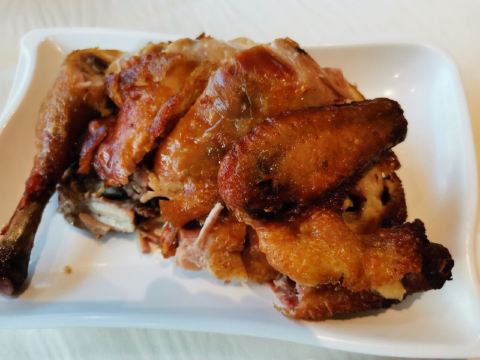 快乐的小吃货__大同的菜系既存在山西的传统菜系,也存在狂放的西北菜,而本次打卡的凯鸽酒楼,是了解大同菜系的一个窗口,也是本地人钟爱的一家经典餐馆。 🌿 说是酒楼,整体的装修风格也确实如酒楼一般,用餐的厅堂还是比较大气的,座椅坐起来也非常舒服。店内的服务人员基本都是本地的阿姨。 🍲 虽说是酒楼,但是菜品的价格一点都不贵,而且菜品均可以点半份,这对于单人用餐来说确实是太友好了。凯鸽风沙鸡 虽然说是烤鸡,但是做法应该像中式炸鸡,腌制之后的鸡肉先蒸熟然后下油锅炸,鸡肉带着腌制之后的味道,丝毫没有觉得寡淡,鸡皮被炸得香脆,唯一的不足就是味道偏咸。三宝莜面窝窝 是最惊喜的一道菜品,莜面上覆盖的是酸菜和土豆炒制的浇头,酸菜的加入平添一丝酸味,解了土豆的油腻厚重感,下面的莜面浸润了浇头的味道,且带着嚼劲,吃起来味道不错。过油肉 如其他人的评价一样,略微有些油,空口吃的话会感到比较油腻。 整体来说这家店性价比非常的高,半份的菜量已经基本和南方一份的相同,两个人的话吃饱可能一百元都不用。而且这家店的味道非常好,菜品都是店内现制的。