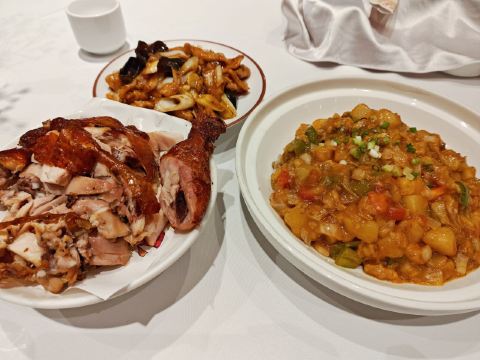 炝拌黄花,凯鸽风沙鸡,老大同过油肉,黄米面炸糕,凯鸽酱汁肉,糖醋里脊,凉糕,烧卖,红豆粥,酸辣莜面,红烧铁板鲽鱼尾,素合子,红烧牛肉,京酱肉丝,松鼠桂鱼,羊肉馅饼,酸汤羊肉,罐焖驴肉,干炸丸子,黑米凉粉,大葱炒鸡蛋,烤枣馍片,鲜肉香菇烧麦,茶树菇