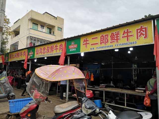 算于琼山市的区域,整个定安最出名的其实就是牛肉了,在仙沟这边,同样也是牛肉的大市场。 在市场上面全部店铺基本上都是卖牛肉的,可以在这里现切牛肉回家,或者把牛肉拿去店铺里面加工吃,算是一种前店铺后市场的格局。