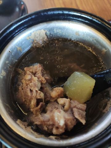 旅游度假真功夫门店还是很多的,想不到的是,节假日还有家庭聚餐的,以为只是上班的吃呢。 鲜辣排骨饭,排骨小辣,就是没啥肉,比较送饭,还有猪肉汤,味道还可以,饭量偏小。