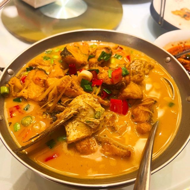 口味:石锅鱼香 很好吃,这里的特色,鱼头切分,煎,很入味。口水鸡 辣香浓郁,很好吃。老醋花生 酸甜咸,口味复合下酒菜。炝炒莴笋 莴笋很脆,很清口。油爆虾 虾很新鲜。蛋包糯米肠 糯米肠软糯,外面裹着鸡蛋脆脆的。特色鱼煲 咸鲜微辣。小炒黄牛肉 很下饭 环境:很好,包间外面还有湖景 服务:还不错
