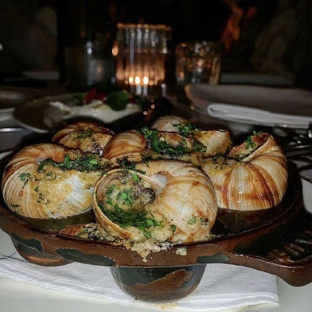蒜蓉蜗牛,côtelettes d'agneau vivienne,Crevettes Tièdes À l’huile d’olive,Carpaccio De Boeuf,Crème Brûlée À La Vanille,Pain Perdu Façon Cyrus,烤龙虾