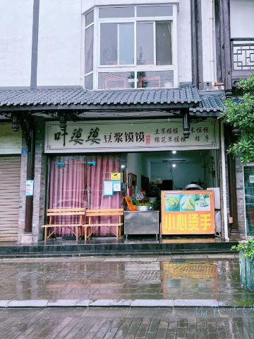 电风扇啊电风扇乐山有个叶婆婆,都江堰也有个叶婆婆 婆婆都是做好吃的,所以才会被人记住啊! 从虹口观景台下山,直奔叶婆婆。突然大雨,不受丝毫影响,就是要去吃到!在吃这件事情上,我还是很佩服自己的,意志坚定,毫不退缩! 大雨,街上本来没有人,突然出现一个打伞的奔跑的女胖娃儿,哈哈哈哈,就是我!小伙伴把车停在叶婆婆店面不远处,然后我就跳下车,赶快往店里跑!因为我不确定店开着门不!看到店家在忙,我心里踏实了! 当天的最后两笼馍馍在等我。 两元一个,每一个馍馍都用桑叶包裹着。立马撕开叶子,露出白白的馍馍,豆子的香味就飘出来!香!咬上一小口,口感比较粗,一整个感觉分量很足。早饭吃一个就应该很饱了!很喜欢。 下大雨,没有顾客,老板在收拾台面。我问老板开了多少年了,老板说自己的老母亲开了20多年了,现在轮到自己来经营了。有历史有温情的店店。 继续下着大雨,手里拿着打包好的馍馍,给老板说再见。 慢悠悠的离开,很安逸的样子。 下次咱们再来! 🌈6月成都周边游之都江堰一日游行程🌈 ✅早午餐选在开了20多年的玉带面,干拌的杂酱面点赞 ✅上山,打卡都江堰有名的蒲虹公路,这里是512后上海捐建的最艰险的工程。 ✅在藤原豆腐店观景台喝绿茶,吃豆腐,看美景,从晴天到雨天。特别舒服! ✅下山打卡叶婆婆豆浆馍馍,好吃! ✅打卡老字号尤兔头,堂食加打包,过瘾!
