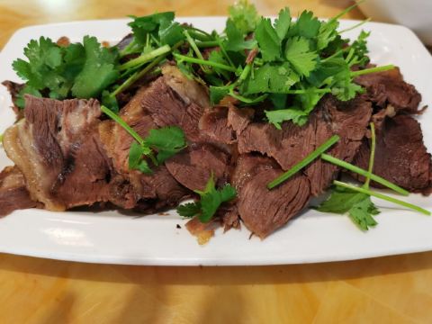 2014年7月18日来的。 这家店是敦煌当地非常有名的老字号,与各地的老字号都一个样:名气大、人气旺、上菜慢、服务差。 在敦煌这样的大西北古城里,他家的环境,已经算是挺好的了;东西其实也不错,酱驴肉很香、也够嫩。