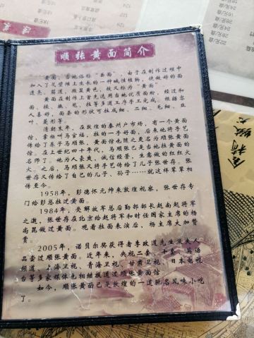 SophyJiang漫旅绘驴肉黄面是敦煌美食里的头牌,据说没吃过顺张驴肉黄面馆,就不算到过敦煌。顺张黄面馆创始于清朝末年,看网上介绍说是敦煌唯一一家相传五代的百年老店,不过店内挂着的传承人只有四代,从清末开启黄面馆的二代马顺张、受到开国将领称赞的三代张世存、将面馆发扬光大的四代张征,到现在接手的五代张黎鑫及方地秋,制作技艺代代相传。 【环境】🌳 门面看起来并不大,却有两层楼,有包厢,干净整洁宽敞。 【口味】🍲 顺张黄面以黄面筋道、驴肉浓香为特色,「卤驴肉」味道鲜美,筋腱红亮,是一种高蛋白、低脂肪、低胆固醇的上品肉类。不过我在兰州经过手抓羊肉和卤牛肉的味觉洗礼后,倒也没觉得酱驴肉有多好吃了。 驴皮,用来熬制阿胶的美容材料,「红烧驴皮」焖出来虽然Q弹,但是皮质厚实,还有一股说不出的胶质味儿,所以也只是尝个鲜了。 「黄面」细嫩柔韧,和兰州拉面一样都是功夫活,将五六斤重的面团拉成细如龙须的面条,下锅很快煮熟捞起,浇上香菇汁,即可享用。黄面比拉面柔软,但不失筋道爽滑,香菇豆干十分提鲜。 饭后来一瓶敦煌特色饮品「杏皮茶」,当地的李广杏皮为原料熬制而成,口感略微酸甜,是吃肉解腻助消化的神仙水。