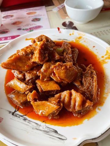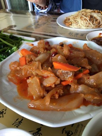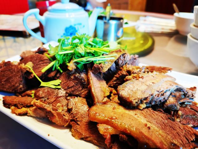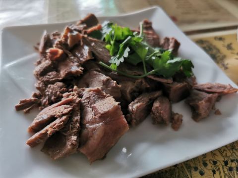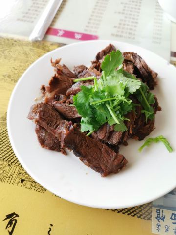 在当地名气很大的一家黄面馆,驴肉吃着很香,很新鲜,黄面够嚼劲,是大西北的重口味。环境比达记好点,自然价格也贵点。