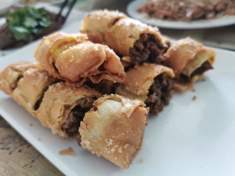artistfx1118【口味】「黄面」到敦煌一定要吃的,这家黄面味道不错,面条筋道,卤很多,咸淡也比较合适「酸辣蹄筋」酸辣口味,蹄筋比较软,很入味,也是这家店非常有特色的菜「卤驴肉」黄面一般都是配着驴肉吃,黄面馆通常会卖驴的各个部分,这家店也不例外,驴肉是最为简单的做法,就是卤制之后,凉着吃,肉嫩「孜然肉春卷」也是驴肉,像春卷的做法,也是丰富驴肉的不同吃法,味道不错,外皮酥脆,驴肉很嫩,口感丰富「红烧驴皮」有点微辣,驴皮营养最为丰富,驴皮就是阿胶,炒的做法很不错,很香「杏皮茶」敦煌最为有名的饮料,到了这里一定要品尝 【环境】[薄荷]环境: 还可以,两层楼,比较大 【服务】[服务铃]服务: 也还不错
