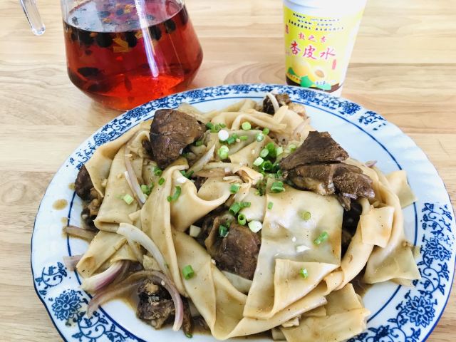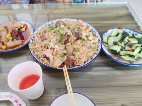来敦煌这几天基本吃了这些美食:孜然羊排,手抓羔羊肉,羊肉焖饼,爆炒羊肝,驴肉黄面。 饮料:杏皮水 这些是我个人理解的敦煌美食,应该就是这些了吧?这家店真的全都有,如果还有其他别的欢迎指导补充! 其实焖饼价格很实惠了,菜单标价68,团购68还有俩菜。 |敦煌凉粉^我一开始以为这是凉菜,结果没想到还是热的。 |胡羊焖饼^作为一个北方人来说,真的是非常爱面食,羊排和焖面混在一起,口味很棒😊 另外拿点评支付使用积分,银行卡满减下来更便宜了! 五一也可以用团购,整体吃起来不错,经济实惠,服务员很客气,服务态度好。 可能是疫情和午市的缘故,中午过来,客人不多,人员密度小,所以相对也很安全。
