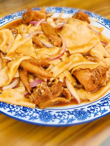 横竖是二温小迪🌸这家餐馆离鸣沙山月牙泉景区大概5公里左右,驱车10分钟左右。看到5星好评才特意开过去吃的,实话说5星标准还真够不上,要是顺路随便吃吃倒也不亏。 ⭐️他家荤菜量不小,价格也适中,是我们西北10天旅游,吃过最有良心的商家了! 🌿环境一般般吧,他们家生意真的很好,国庆旺季,下午1点多,餐馆里也没啥空位,餐馆外面还放着好多桌子,也几乎被坐满了! 👩🏻🍳服务不主动,但也有求必应,上菜速度还是挺快的,除了鱼现杀会慢一点。 「杏皮水」他们家杏皮水味道偏甜,杏味吃不出,喝起来更像乌梅汁! 「敦煌凉粉」和我们上海的凉粉不太一样,隔壁桌推荐的,但是我们三都不爱吃。 「沙葱炒鸡蛋」味道还可以,沙葱很香,小伙伴挺喜欢的,我觉得沙葱有点像韭菜,有点吃不惯。 「烤羊排」烤羊排味道还是可以的,量也可以,就是有些部位咬不动。 「红鳟鱼」这鱼味道可以的,跟我们哪里清蒸的味道挺像的,骨头不多,也没啥腥味,南方人应该爱吃这道菜。 「土鸡焖饼」本来要点羊肉焖饼的,隔壁桌说有膻味,我们怕吃不惯,就点了鸡肉的。土鸡还行,就是给的都是爪子,骨头的部位,面片口感不错,味道还不够入味,还点点骚气。
