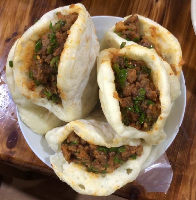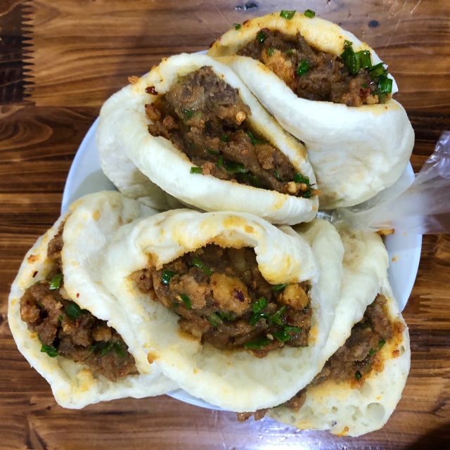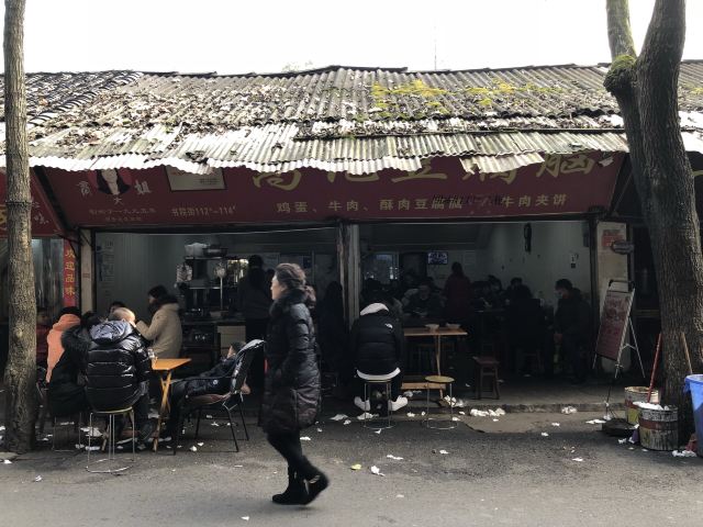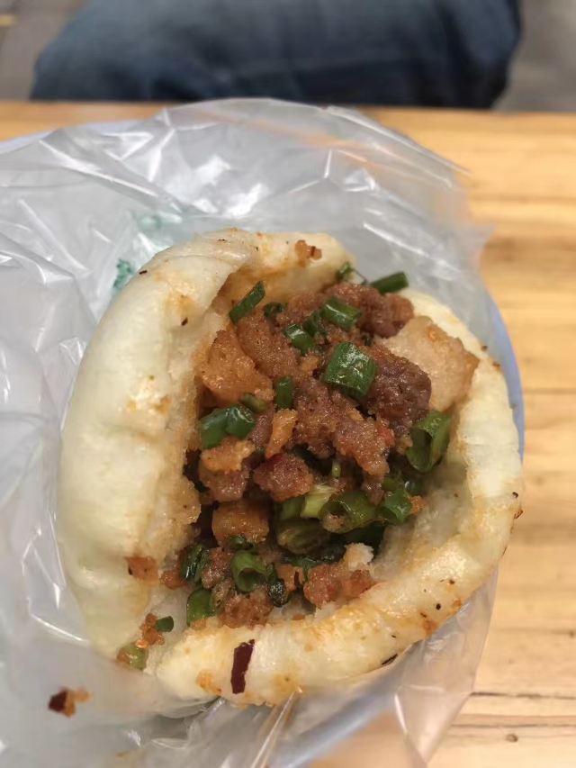 同伴来吃过,推荐为峨眉最好吃的豆腐脑,于是开车找过来。 成都人习惯把街边较简陋的小餐馆叫苍蝇馆子,这家豆腐脑要算标准的苍蝇馆子了。 生意果然火爆,先要自己找到座位,然后开始点餐。一行人统一点了一碗酥肉豆腐脑(素豆腐脑+酥肉)和一个牛肉夹饼。饼软软的,夹的粉蒸牛肉味道分量都不错,豆腐脑够辣,味道挺好的。 算得好吃不贵的特色小吃。