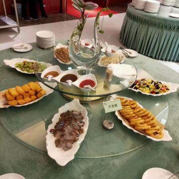 黄瓜拌豆皮,麻辣香锅虾,黄鱼贴饼子,小白菜炖羊肚,虫草青豆苗,黄金大馒头,麻辣椒炒肉,麻籽豆腐,鹅肝酱干捞粉,鸡汁穿心莲,鲜肉蘑炒肉,鲜果冰激淋