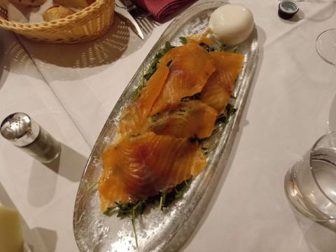 Trattoria Dall'Oste餐馆的环境和气氛非常不错。服务态度让你觉得有种你就是上帝的感觉。意大利面有独特的口感,让人眼前一亮,松露的意大利面有股奇特的香气,海鲜意大利面的香味也非常浓郁。蜜瓜搭配生火腿的吃法非常有趣,水果的清新和火腿的奇妙质感柔和在一起,让人陶醉其中。三文鱼非常新鲜,肉质鲜美,又值得回味。最最最值得赞扬的还是牛排,是我这么多年吃过的质感和味道最好,再搭配上黑胡椒,你好像荡漾中充满激情的恋爱当中。吃一口鲜嫩的牛排,再喝上一杯醇厚的红酒,看着古老艺术的老桥,这就是翡冷翠的艺术所在。这绝对是一家值得你们一起再去,无法忘记的餐馆。