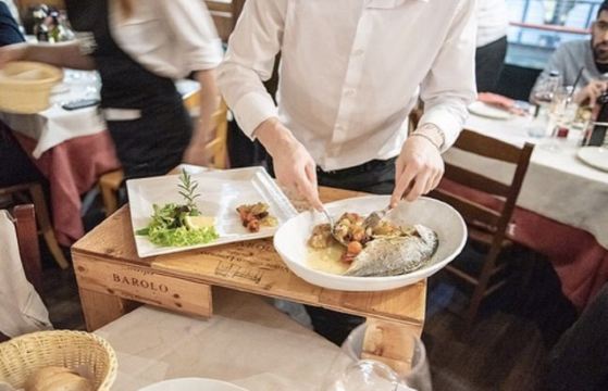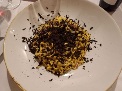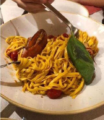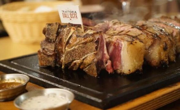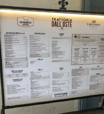翱翔的大鲨鱼菜品的颜值非常高。有机会去Florence 要去尝尝! 没想到除了Pizza and Pasta, 牛排也是这很重要的食物,大街上琳瑯满目的steak house, 大块肉挂在前窗,肉食者必流口水。 Trattoria dall'Oste 透过TripAdvisor 订位还有20% OFF, 没错就是打八折。 推荐以下菜品 Carbonara black truffle pasta Seafood risotto Grilled Vegetables T-Bone Steak Caprese salad Tiramisu Panna Cotta Lemon Sorbet