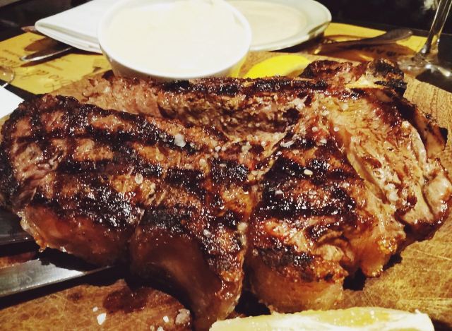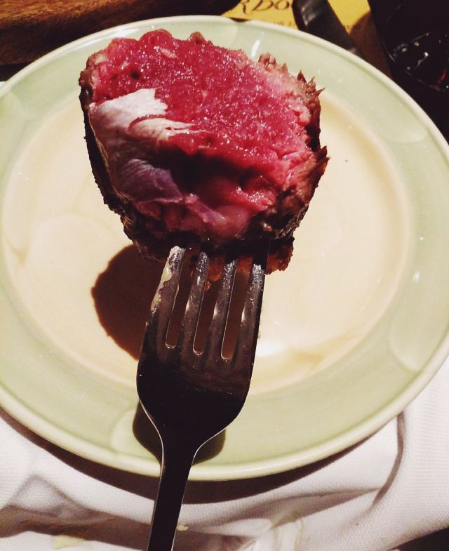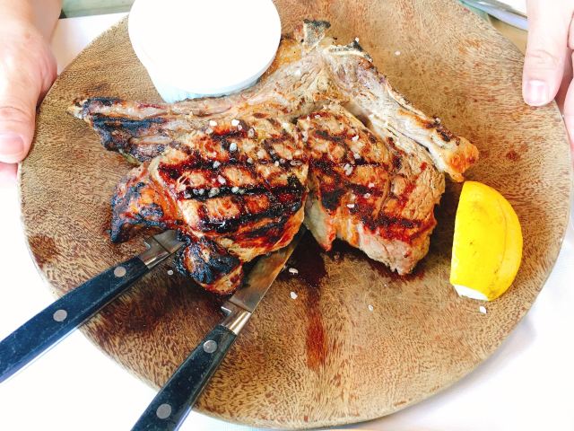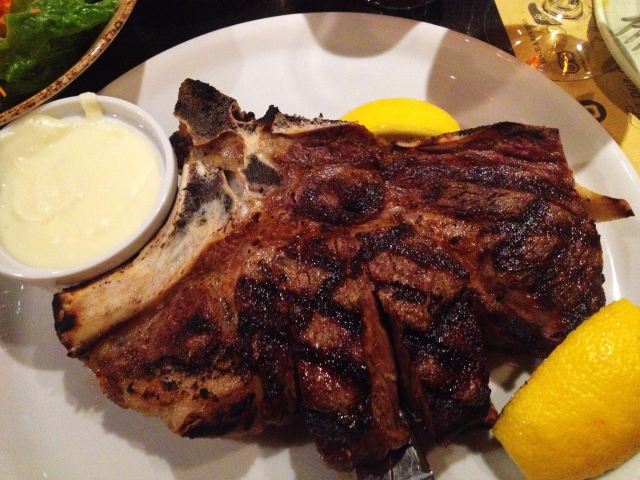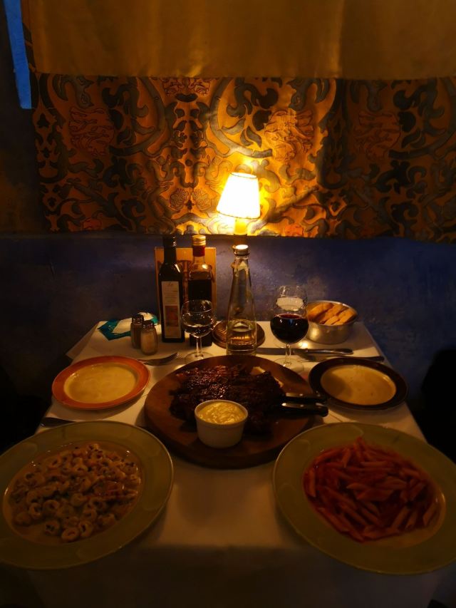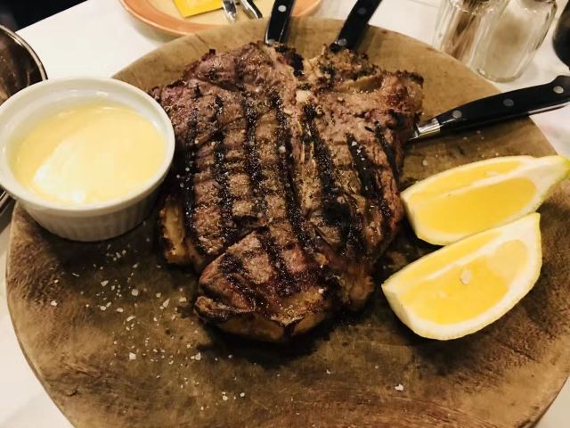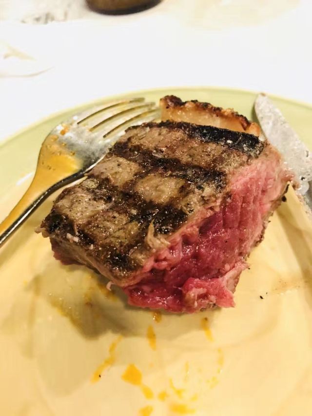 在圣母百花大教堂附近的这家吃牛排的名店,里面挂着主厨和许多名人的合影。在这里当然要点大名鼎鼎的佛罗伦萨T骨牛排。虽然一公斤起售,但好吃的东西真得不嫌多,怕生可以选5成熟,但三成熟是最佳的。端上来的牛排肉质柔嫩,如同婴儿肌肤,而且完全没有牛肉的生腥味,非常美味。