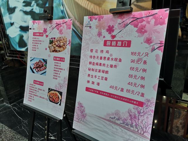 鹤鸣洲樱花度假村的餐厅就在前台一楼旁边,这边是西餐厅的形式,如果是吃饭的话,性价比还算是不错的,也就是40多一个菜左右,人均的话,也就是50块左右吧,服务方面也是挺不错。