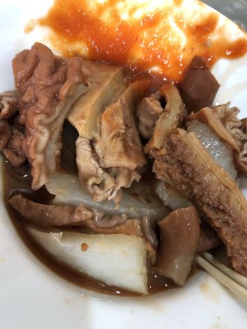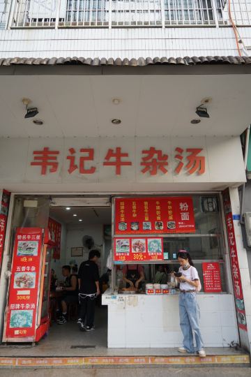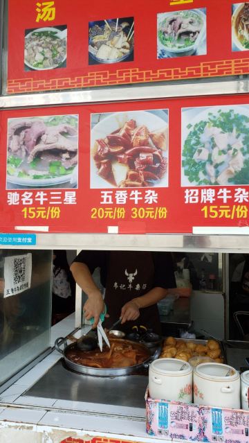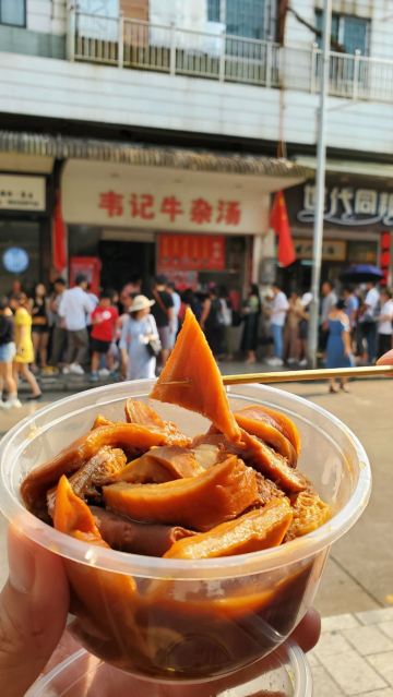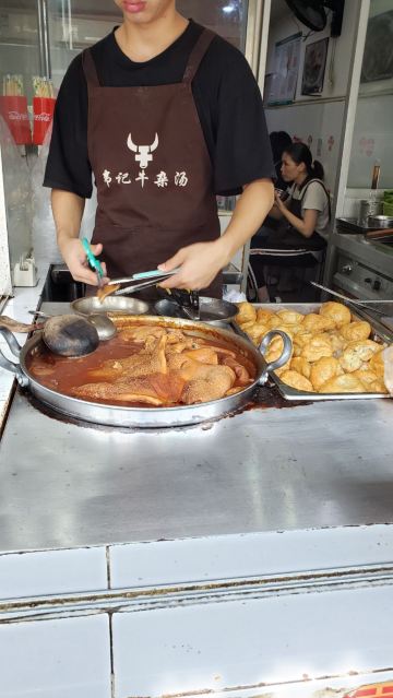 来顺德必吃菜品之「牛杂」 来顺德第一顿,到了顺德放下行李直接就出来吃东西了,正好住在步行街上,附近有2家比较出名的牛杂,第一天选了这个,当天人还是挺多的,不过排队时间也不长。 这个牛杂,真是分量十足,超过我的想象,基本上一大碗都是,反正一碗30块钱的牛杂,让一个一天没吃饭的我直接吃饱了,全是肉,里面只有2块萝卜,算是非常划算了。味道也是非常的棒,虽然是内脏,但是没有任何的异味儿,里面还有个面筋球好像是,味道超级好,把汤汁洗得非常饱满,非常好吃。 个人感觉牛肚牛肠最好吃,总之来顺德,一定要吃一次才行
