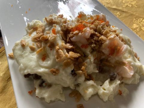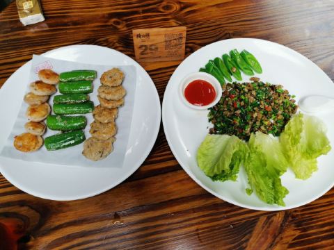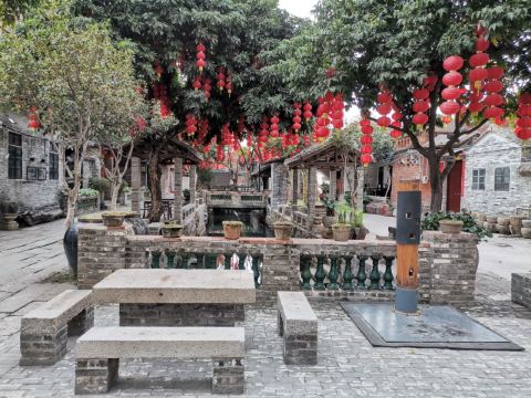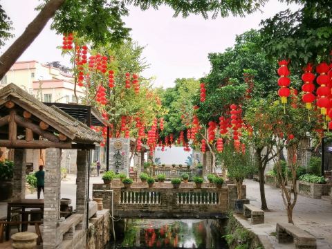YoYo_0D0F8T1M我们到了一间顺德非常出名的私房菜吃饭,环境超级正[调皮]一进去就像进入水乡一样,非常有村落风格,小桥流水,一河两岸,风景宜人,百年老树上挂满灯笼🏮[调皮]很多都是像旧村落改造过的房间,好有创意和风味[坏笑] 服务很好[OK]每间房都有专门服务的工作人员在随时候命,我们一到就马上冲茶,帮我们消毒好餐具,好贴心哦[调皮] 「顺德无骨鱼」这里的招牌菜,无骨🐟,鱼肉超级滑,大头鱼差不多有十斤重,好大条,生生猛猛[调皮] 「煎肠粉」皮脆脆弱,第一次吃这种肠粉,好特别[调皮][调皮] 「一鱼三食」好大份,把鱼骨加上一点🦞调味,好入味,鲜味感十足[强][强] 「顺德头抽豉油鸡」一大只🐔,边吃边[强],皮和肉都是很滑,我们很快就把这鸡消灭了,哈哈哈哈😄 「毛蟹仔焖黑毛节瓜」节瓜够晒林,毛蟹都非常好肉[调皮] 这里环境好,出品更是无得顶[强],有野看有🉐️吃的好地方[调皮]