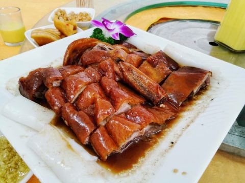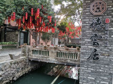 月lthyu🏡德云居隐藏在碧江村落中的水乡,美的让人心醉。它不止景致美,在北滘也是当地人宴请的好地方。 📍地址:顺德区北滘镇德云街29号金镂(近汀涌桥)。 💰人均:100 🏮德云居不管是白天还是晚上都有着明显的标志,就是门前、大榕树上都挂着的红灯笼。如果不知道这是餐厅,还以为是一处景点,它白天有白天的优雅,夜晚有夜晚的温婉,不管什么时候来,都有着它独特的美。 🐟到德云居必点的当然是无骨鱼肉打边炉鱼!所谓无骨鱼,即是鱼去骨后肉切成条状!无骨鱼肉打边炉鱼在清水中放入几片姜片,然后把鱼条放入滚水中,煮上2.30秒,盛起来放在碗中,蘸上特制的酱汁,鱼嫩而鲜弹,带着沙姜的香味,超级美味。 🐟天麻鱼头汤真是超推荐的,上桌后就能闻到那淡淡的鱼鲜味,汤头灰白中带着天麻的淡淡香味,入口有着胶汁,一口气喝了三碗才舍得放碗。 🐟鱼骨煎焗,脆香的外皮,咬下去内里鲜嫩,别有一份口感。 🦢烧鹅,皮脆肉润,咬一口多汁,回味无穷。 🌟肠粉常规是蒸的,这里的煎肠粉真是超特别的,火候恰到好处,外皮脆香,内里软滑,风味无穷。 🎋竹笋虽然常吃,但这里的一定要试试吊丝丹竹笋,鲜嫩中有着爽、脆、甜的口感。 📌还有还有……只恨没多带一个胃,撑到扶墙而出,很多特色菜只能下次再来品尝了。