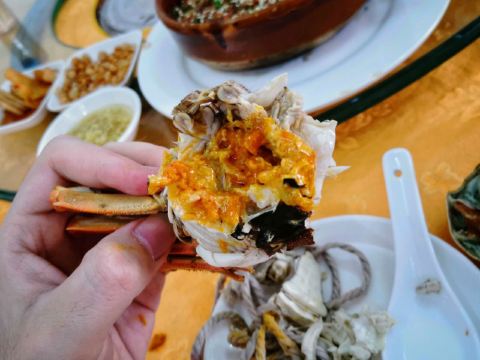 YoYo_3W6M5T3J早就久闻德云居的大名了,这个周末跟朋友到金楼玩,顺便慕名打卡。 原本以为是一个房子的,没想到是一河两岸一个园区,整个格局都是以前顺德的看房子的样子,现在看起来十分有韵味,很适合拍照! 服务方面,我觉得这里的服务员服务态度跟海底捞有得一拼了,十分周到!还会贴心打水我们洗手,对于顺德传统餐饮来说,实在是很难得。 出品方面,尝试了顺德本地出名的禾虫煎蛋,有点重口,但是值得的一试。 大闸蟹,必须好评!现在吃螃蟹正是季节,蟹膏非常鲜美!! 龙虾炒牛奶,第一口下去可能会觉得清淡,随着龙虾肉味道出来之后,整个味道刚刚好,奶味浓郁,强烈推荐! 其他的菜出品也是很不错! 总的来说德云居还是挺值得推荐的!