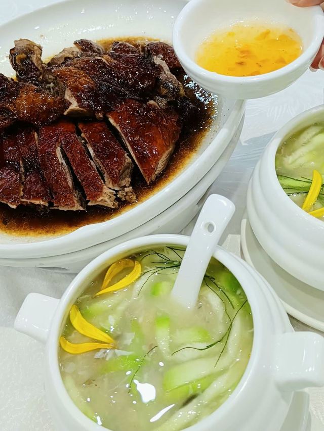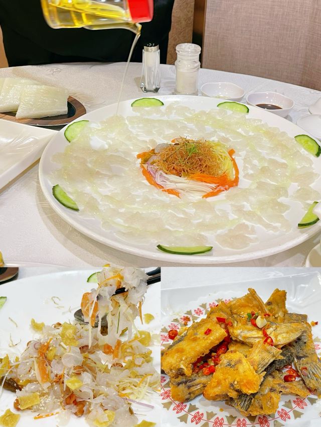 YoYo_9K1S8U7KAAA景区隐藏一家座无虚席的粤菜馆 做了很久的游玩攻略,终于等到放假和闺蜜👯♀️冲出广州第一站:容桂最热门的网红景点打卡游玩啦🥳 ⛰️景点玩法:渔人码头三A景区吃喝玩乐齐全,在这里拍照随手都能拍出大片效果📷 🍜美食推荐:犹豫我闺蜜是个社🐮,她直接问了当地本地人有什么好吃的推荐,本地人说他们一般都去蓝岸银湾。我们毫不犹豫跟着前往试探,还好那天来得早,排队几分钟就到我们了😁对于我们精打细算的人,当然坐下看下菜单和看下线上有没团购套餐🤗没想到景区内这家线上有团购而且超级划算,套餐还包含高级食材。 🌶 佳肴菜名:五谷杂粮烩鲜鲍👍一人一只大鲍鱼真的太赞了👍味道很鲜 ✅金牌烧鸭🥇 几乎每桌都必点菜,皮那叫一个脆!肉吃起来鲜嫩多汁😋记得趁热吃口感才最佳 🌼菊花拆鱼羹 好精致喔,一人一盅,一端上来就闻到🌼香味,吃起来滑滑的,里面还挺多鱼肉😜嗯,是我最爱的。 对这次的游玩非常满意,我和小姐妹都拍了很多相片,还尝试了很多当地特色美食🤩下次我一定带上爸爸妈妈来试试😋 #吃过一次就念念不忘的粤菜
